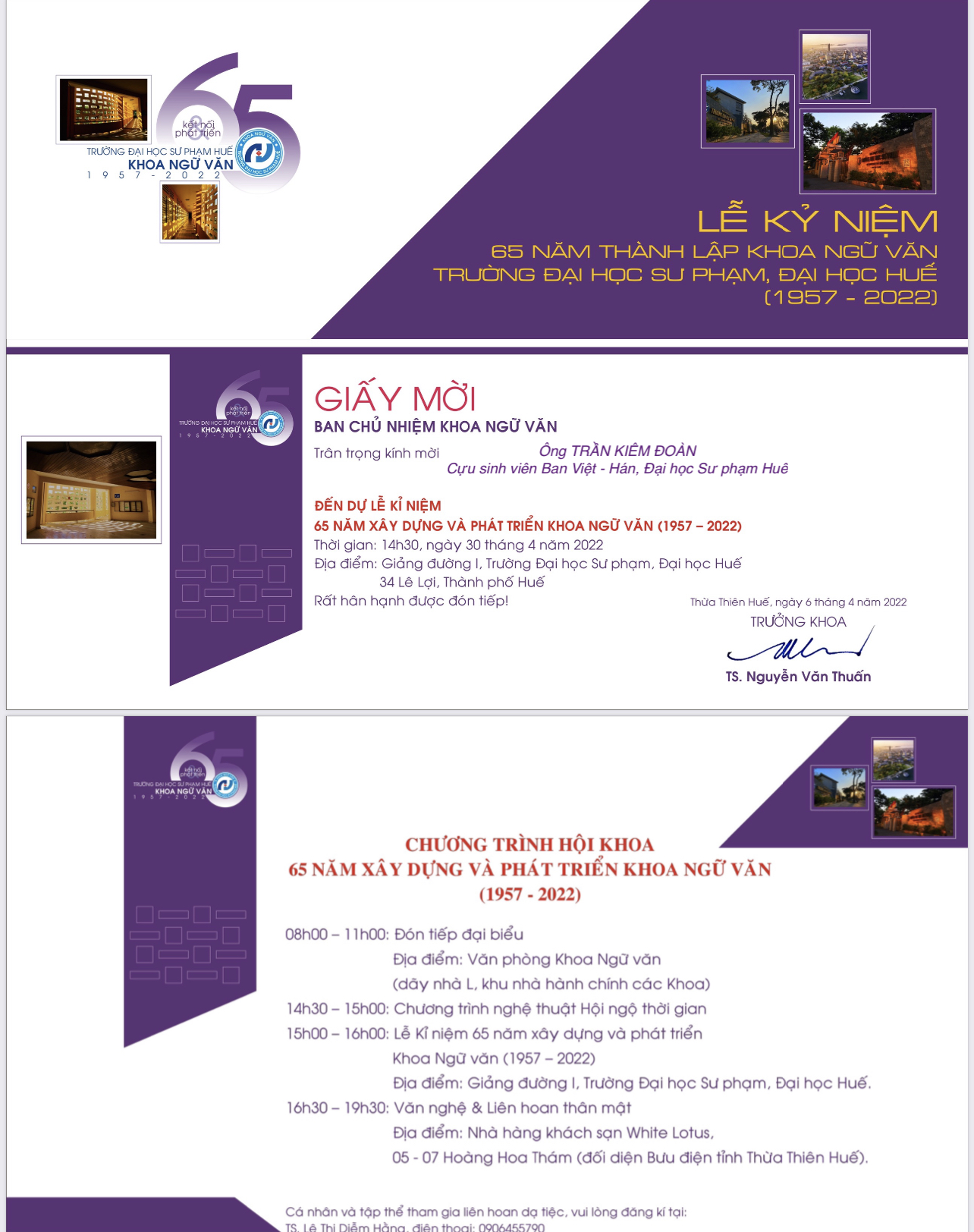 Xin cảm tạ lời mời của Ban Tổ Chức kỷ niệm 65 năm Ban Việt Hán và anh chị em cựu sinh viên ở xa không đến được sẽ xin gởi vòng hoa chúc mừng.